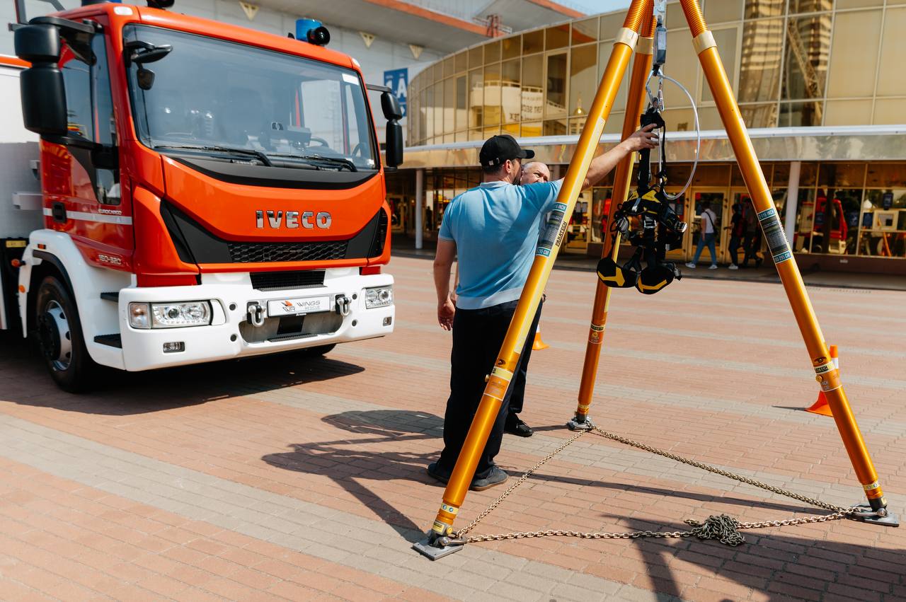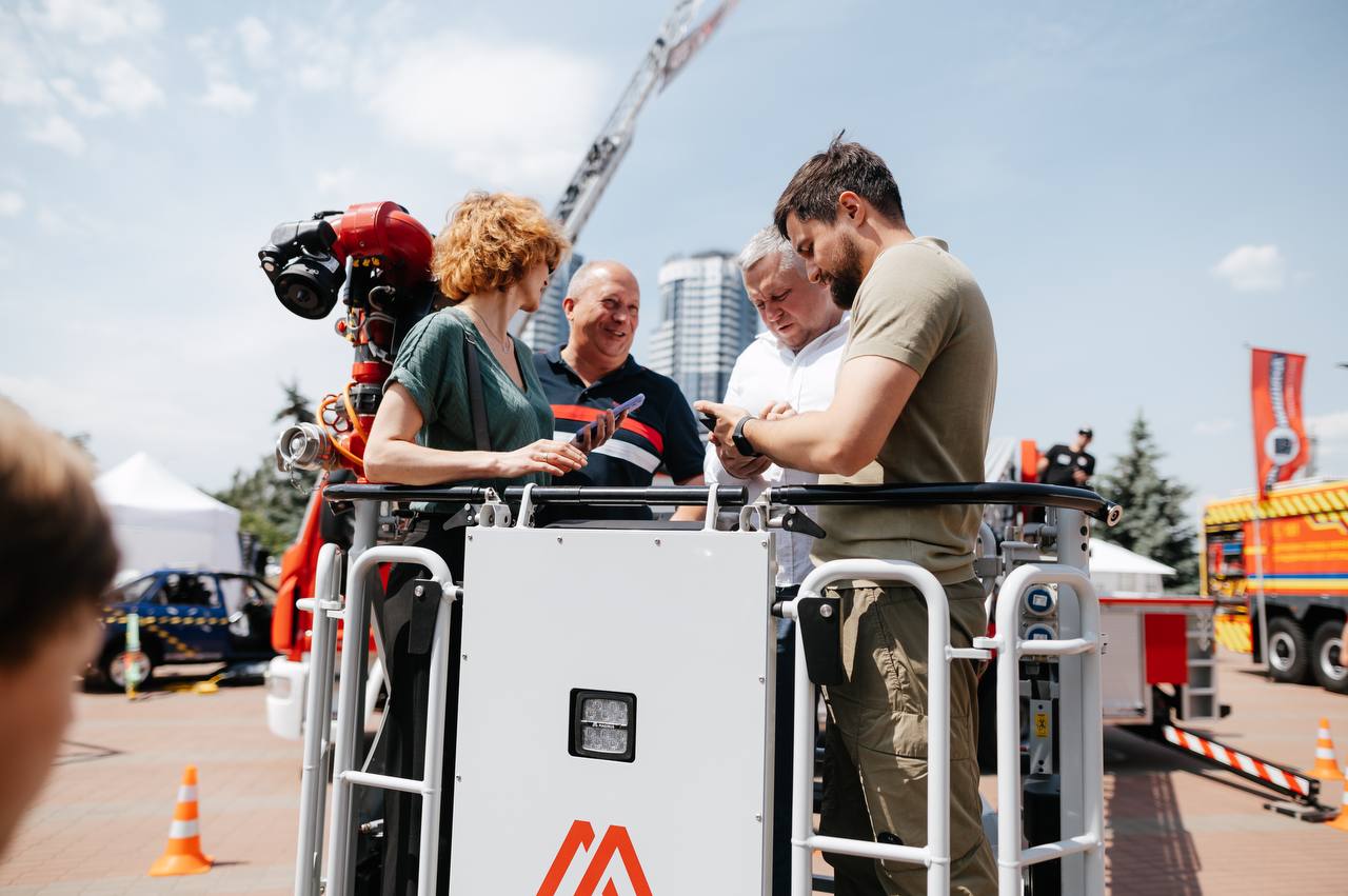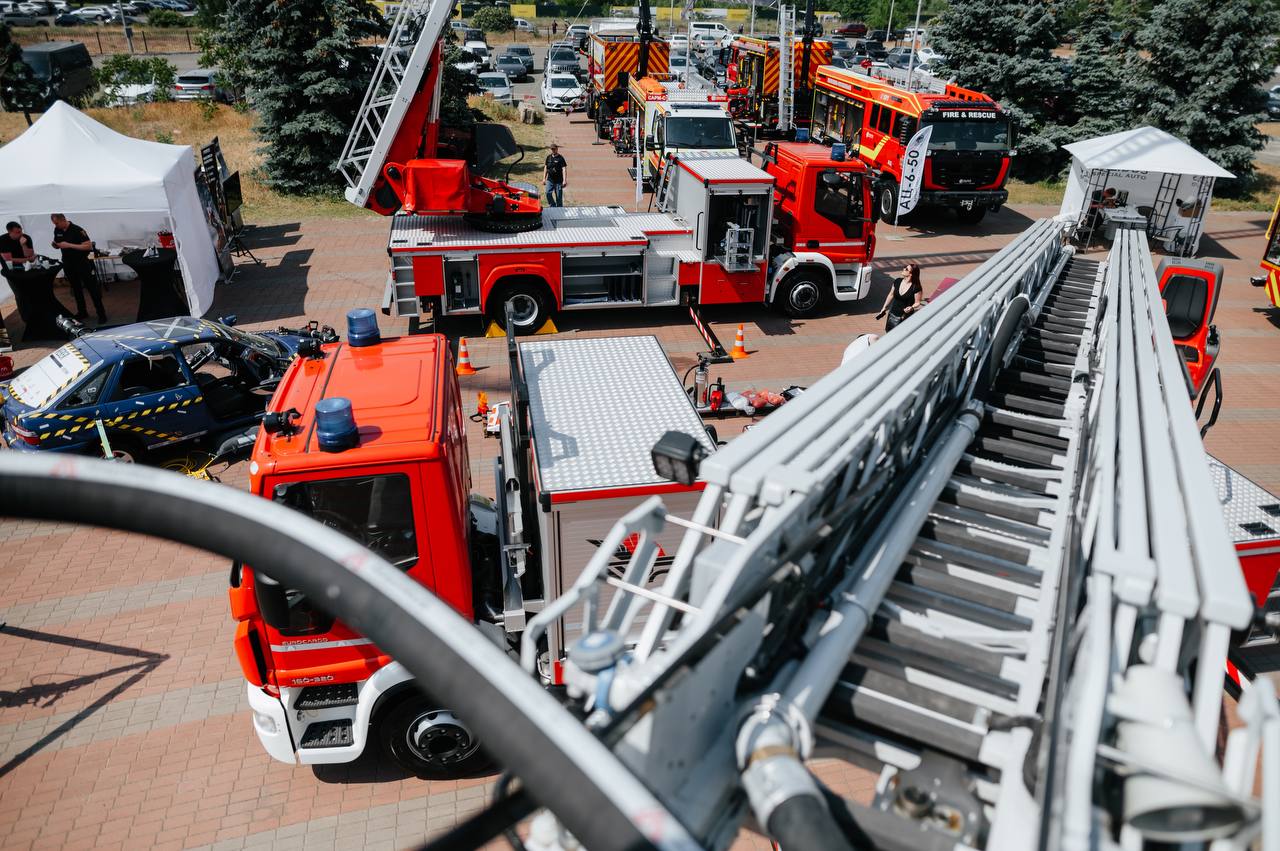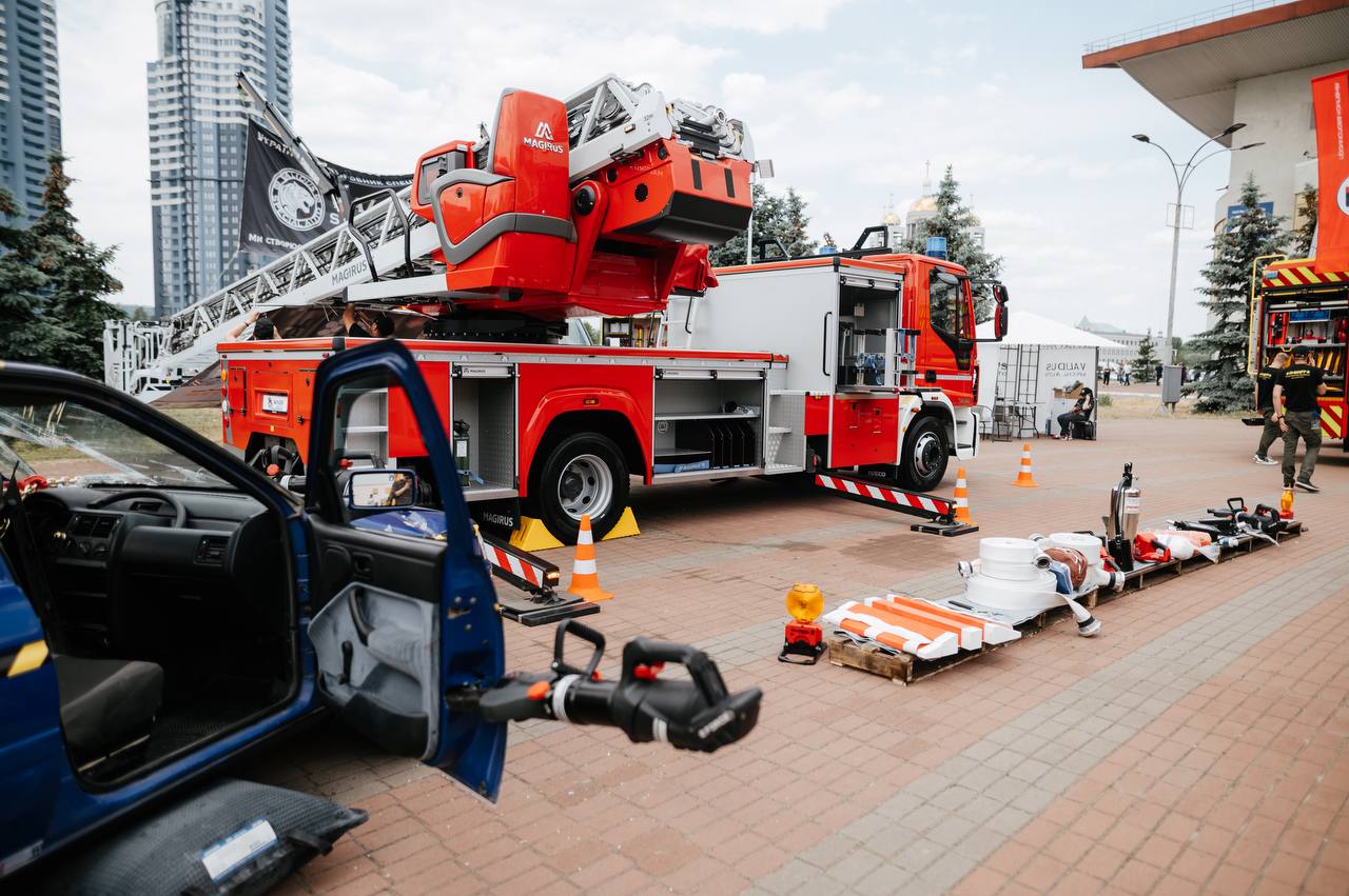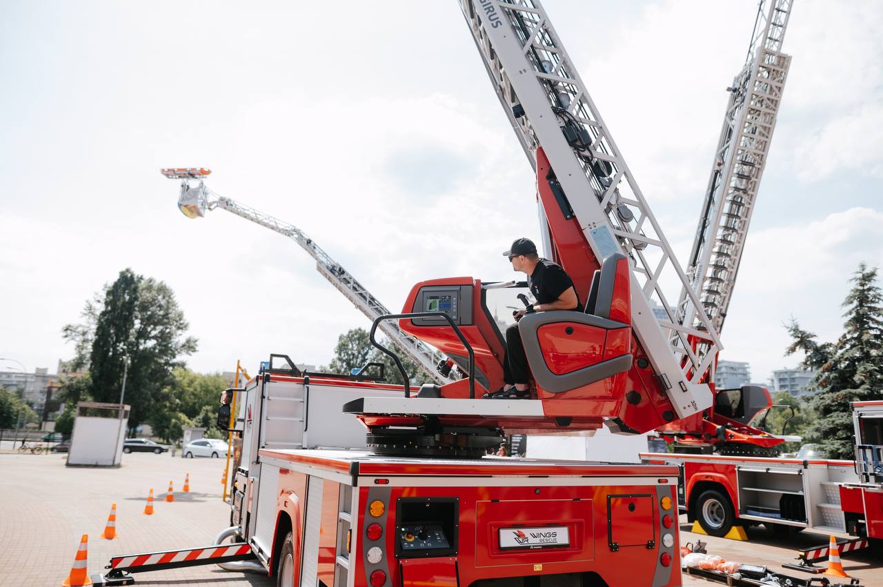 На відкритому майданчику експозиції команда «Wings Rescue» представила для огляду автодрабини висотністю 32 та 42 метри, котрі поставляються до підрозділів ДСНС і вже отримали чимало схвальних відгуків від рятувальників, які відмічають зручність використання та якість даної техніки. Окрім цього компанія також поставляє для України унікальні тактичні роботизовані системи пожежогасіння Magirus Wolf R1 на дистанційному керуванні.